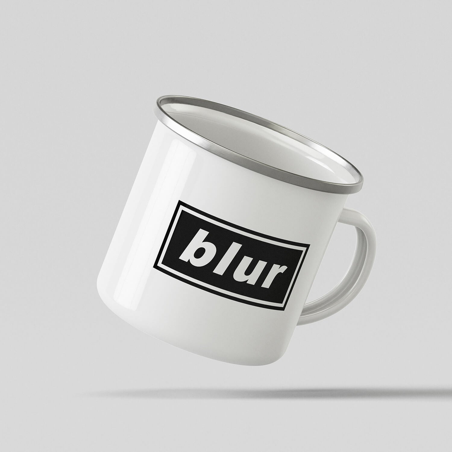 Here's the BLUR enamel mug, a nod to Liam and Noel's band logo, but revisited in a benevolent, slightly mocking way (just barely).